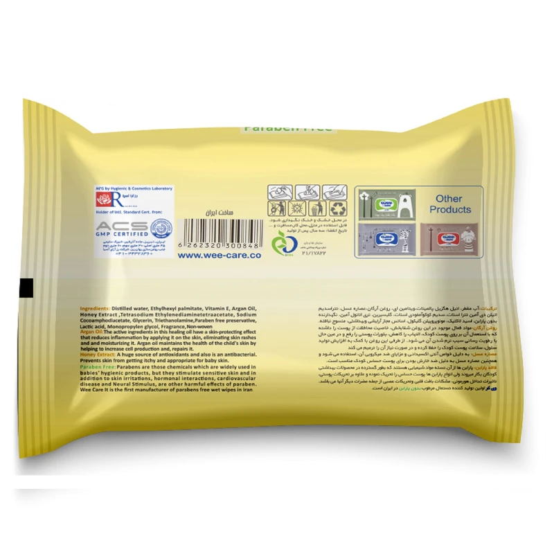 دستمال مرطوب کودک وی کر حاوی عصاره عسل و روغن آرگان – 72برگی
