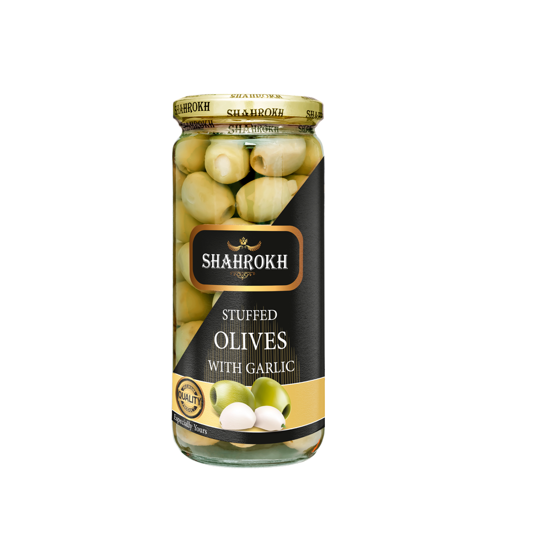 زیتون با مغز سیر 500 گرم شاهرخ – 6261388220099